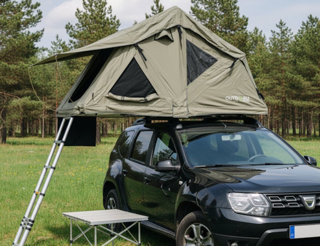Versteckte Kosten, Suche nach passendem Werkzeug und seitenlange Gebrauchsanweisungen will niemand – schon gar nicht im Urlaub und bei der Vorbereitung darauf. Deshalb sind die Dachzelte von OutdoorU allesamt standardmäßig mit viel Zubehör ausgestattet. Dazu gehört z.B. das benötigte Werkzeug, die Aluminiumleiter mit sicherem, geriffeltem Tritt, eine durchgängige Matratze und die schwarze Abdeckung für die Lagerung – alles verpackt in einer gepolsterten Transporttasche.