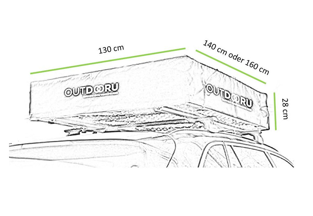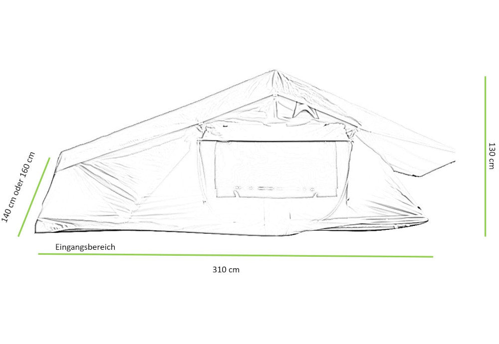 Entdecke die perfekte Größe für Dein Abenteuer: Unser Dachzelt in Zahlen. Das Dachzelt ist komplett aufgespannt 310 cm lang und 140 cm, 160 cm oder 190 cm breit.